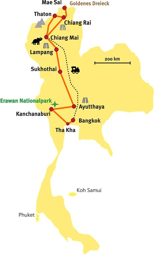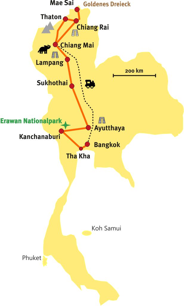 Nach der Ankunft am Flughafen Bangkok treffen Sie Ihren Fahrer und örtlichen Reiseleiter und fahren morgens nach Amphawa. Dort, in der Nähe von Bangkok, besuchen Sie am Vormittag den kleinen schwimmenden und farbenprächtigen Markt von Tha Kha auf einer Bootstour. Anschließend geht es zum Zugmarkt Talaad Rom Hoob.